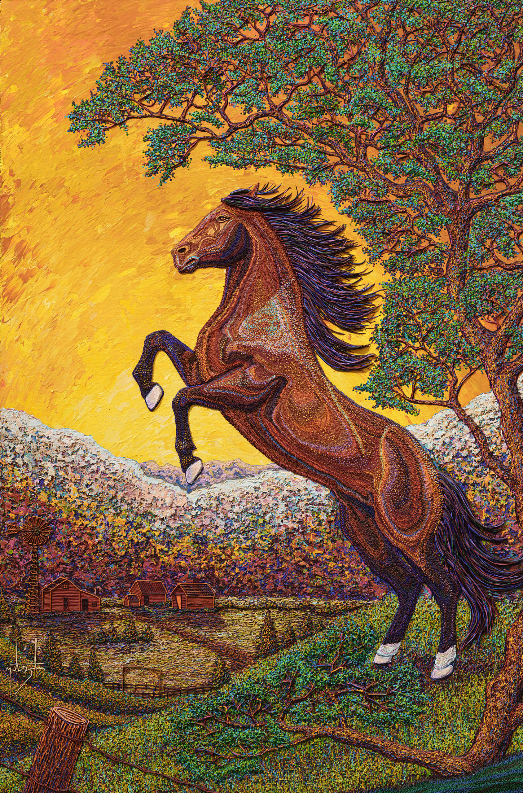 This painting is one of Martin’s most loved paintings! The attention to detail, love of color, and love of the beauty of the Stallion. The Stallion is majestic and awe inspiring. We are so happy to share this lovely piece with you.